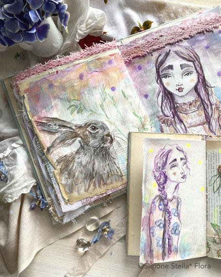 Es ist das perfekt Unperfekte oder das unperfekt Perfekte, was mein Herz höher schlagen lässt. Das Leben, wie das Malen darf nicht glatt sein, sondern lebt von seiner Lebendigkeit. Es ist die Haptik des Papiers, sein Rascheln, die handgeschriebene Notiz in einem alten Buch, ein Briefumschlag mit einer fremden alten Marke... alles flüstert Geschichten und webt sich in meine Kunst mit ein. Risse, Löcher, Knicke... alles gehört dazu. Trägt die Handschrift einer ganz eigenen Schönheit für mich.